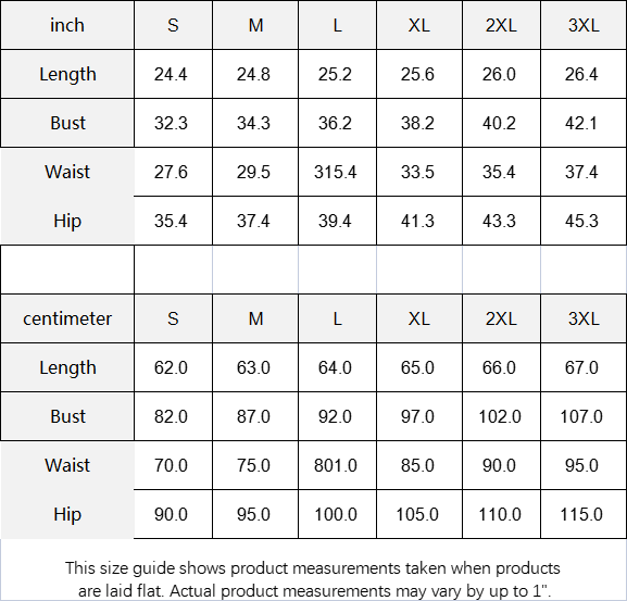 This size guide shows product measurements taken when products are laid flat. Actual product measurements may vary by up to 1".