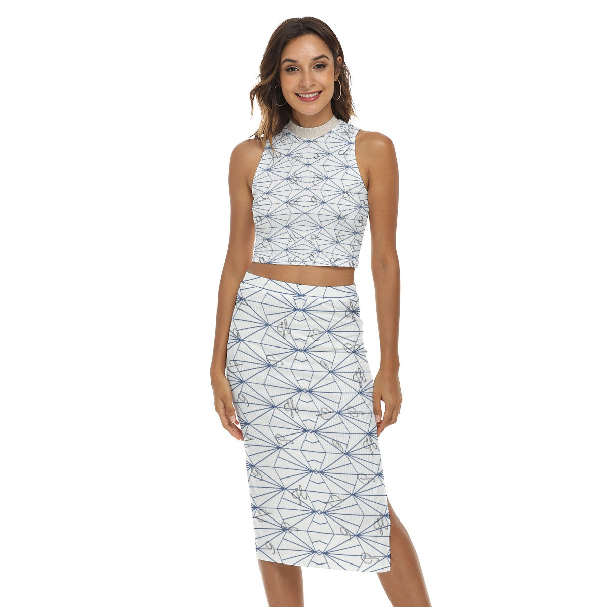 Stand-up collar cropped top, matched with a split hip skirt, can show a sexy figure very well